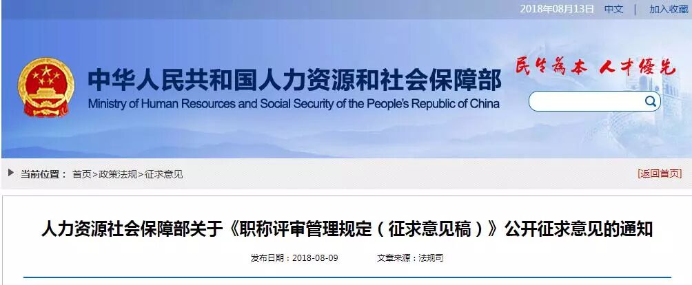為貫徹落實(shí)中共中央辦公廳、國(guó)務(wù)院辦公廳印發(fā)的《關(guān)于深化職稱制度改革的意見》,進(jìn)一步規(guī)范職稱評(píng)審工作,提高職稱評(píng)審質(zhì)量,我部研究起草了《職稱評(píng)審管理規(guī)定(征求意見稿)》。現(xiàn)向社會(huì)公開征求意見。公眾可以通過以下途徑和方式提出意見: